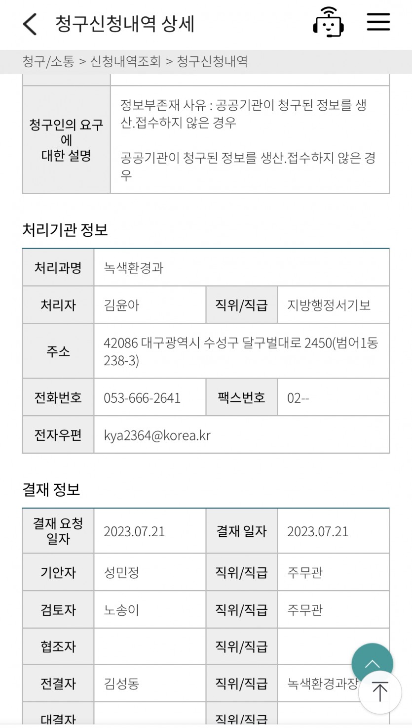 수성구청 녹색환경과에서 정보공개포털에