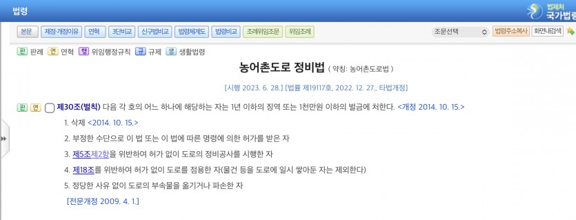 그러면 농어촌도로정비법 제30조위반