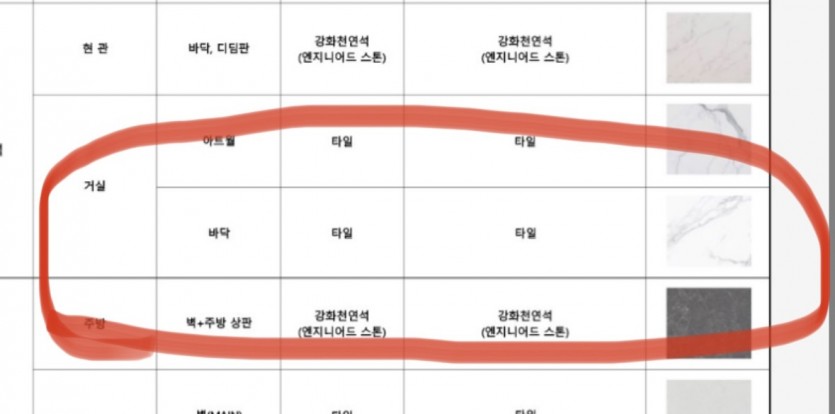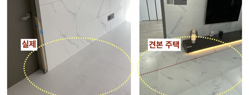 또한 입주민들의 동의 없이 거실 바닥 타일이 모델 하우스와는 전혀 다른 타일이 시공 되었음을 발견하였습니다.